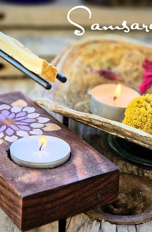 4. Enciende la vela y colócala en el hueco del quemador para que no permita que el palo santo se apague.