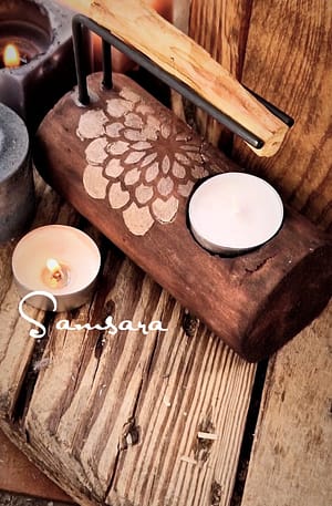 4. Enciende la vela y colócala en el hueco del quemador para que no permita que el palo santo se apague.